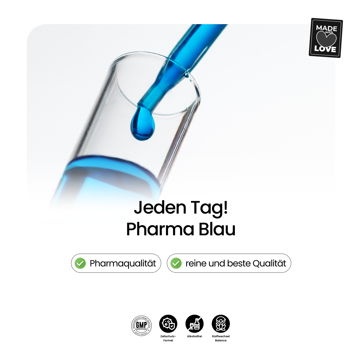 - Methylenblau 1,2% als Flüssigkeit mit klarer, minimalistischer Rezeptur für unkomplizierte tägliche Anwendung.